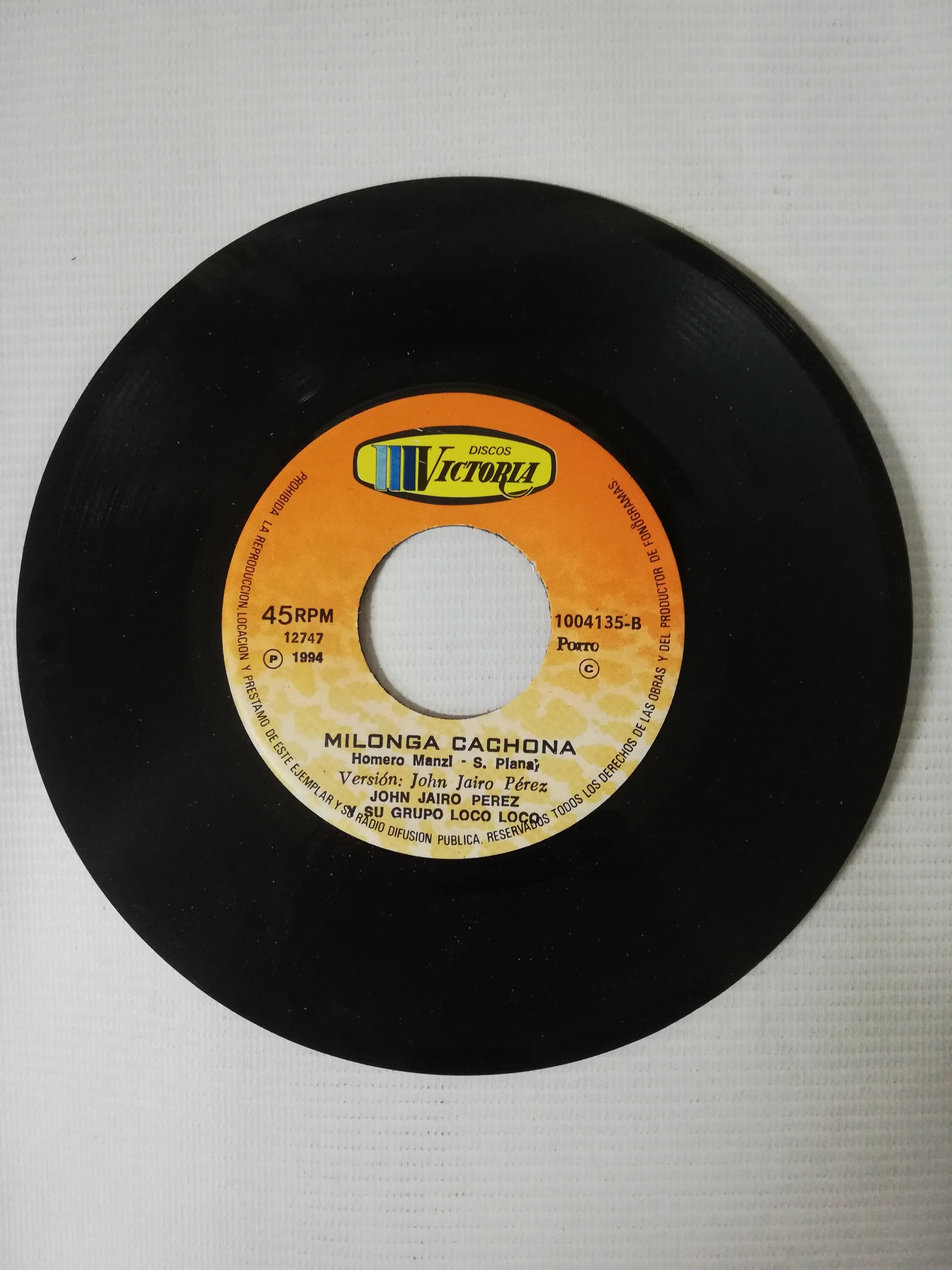 SINGLE 45 RPM USADO EN BUEN ESTADO, DISCOS VICTORIA COLOMBIA 1994.
